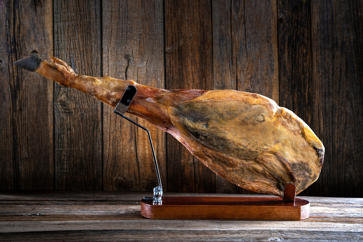 Un jamón es el resultado de curar la pata trasera de un cerdo en sal. Los meses de curación pueden variar sustancialmente según el tipo de cerdo y su alimentación, lo que a su vez influirá en su sabor.